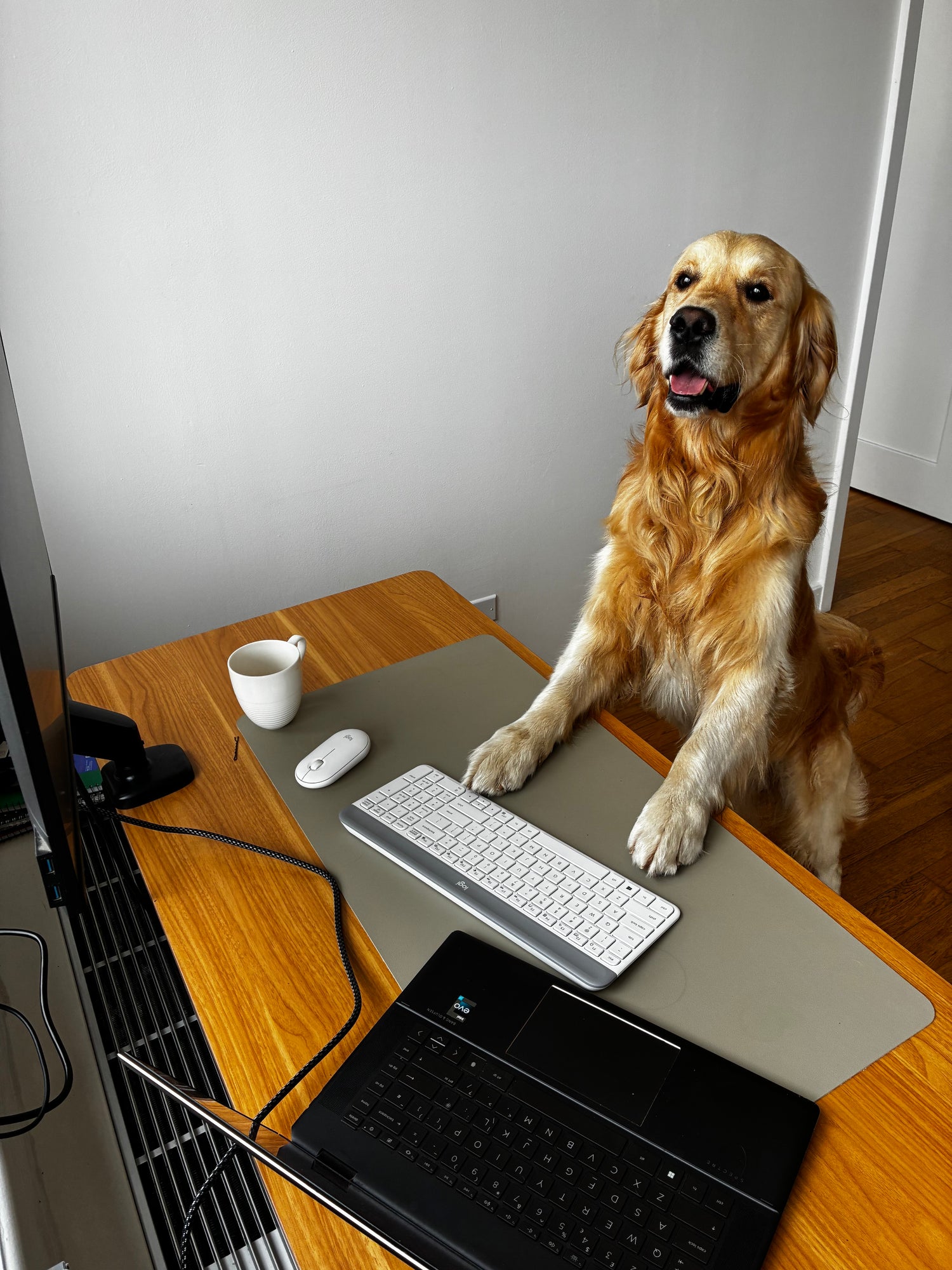 Rudy came into our lives three and a half years as a golden bundle of energy and floof. Since then, he’s grown into the perfect mix of gentle soul and mischief-maker. He greets every delivery box like it’s Christmas morning, knows exactly where the treat cupboard is, and has a knack for hiding socks in spots only he knows about.
